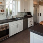 Mitered Laminated Edge Detail on countertops, shelves and table top, which give the stone a “thick slab” look.